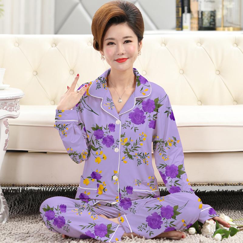Роскошная высококачественная пижама с зелеными растениями и цветами, женский весенне-осенний комплект с длинными рукавами из имитации хлопка, большого размера, средней длины для дома