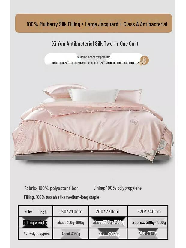 Mling 100% Tussah Silk Jacquard All-Season Two-in-One Quilt