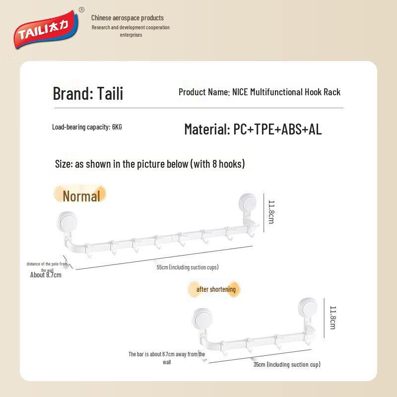 Настенная полка для хранения на присосках с 8 крючками