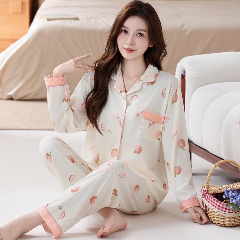 Милый тюльпан новая пижама женская весна и осень имитация хлопка с длинным рукавом домашняя одежда большой размер комплект