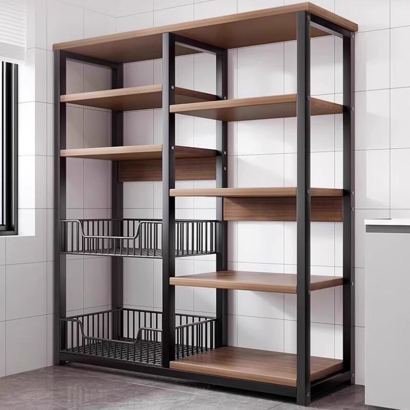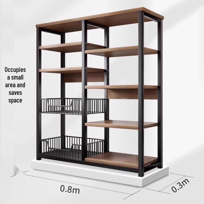 Модель2 сетчатые корзины + 4 полки, черный дуб, 80x30x121см