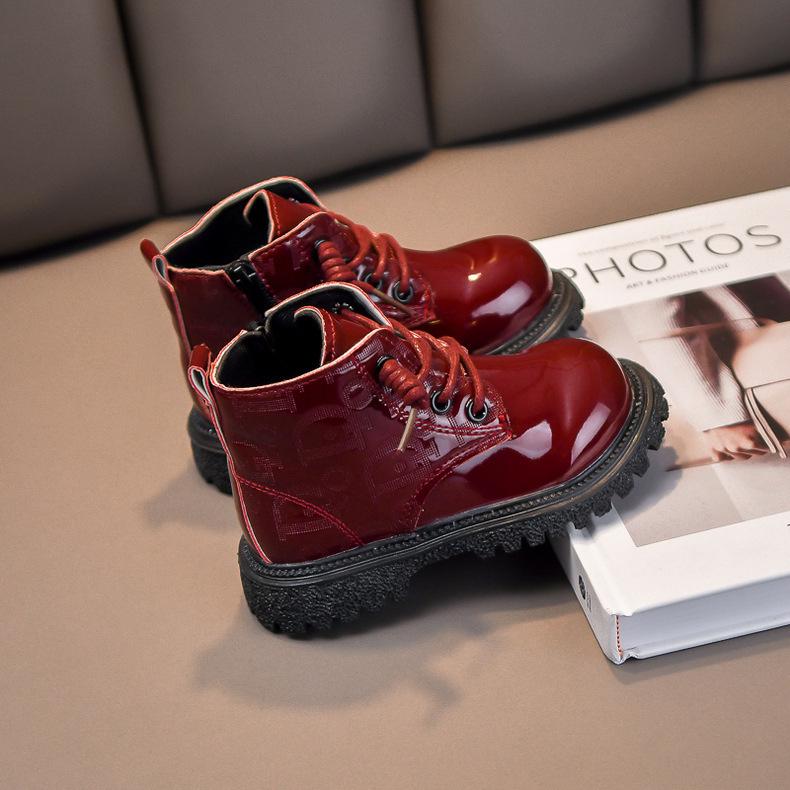 Детские лакированные ботильоны - Мягкая подошва, Теплые, для малышей, мальчиков и девочек