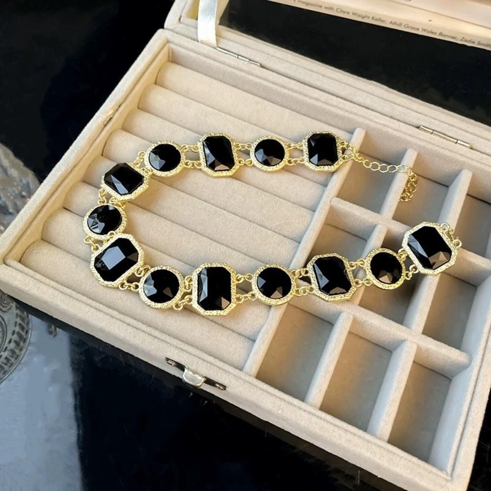 Collarbone Chain Retro Black Earrings Square Circular Dark Style Neck Chain Mourning