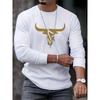 Men's Autumn Winter Loose Fit Plus Size Comfortable Casual Sports Bull Pattern Printed Round Neck Fashion Long Sleeved T-shirt — купить товар онлайн с бесплатной доставкой по всему миру!