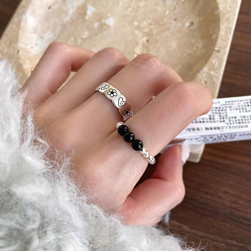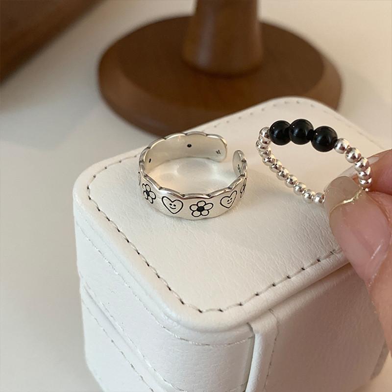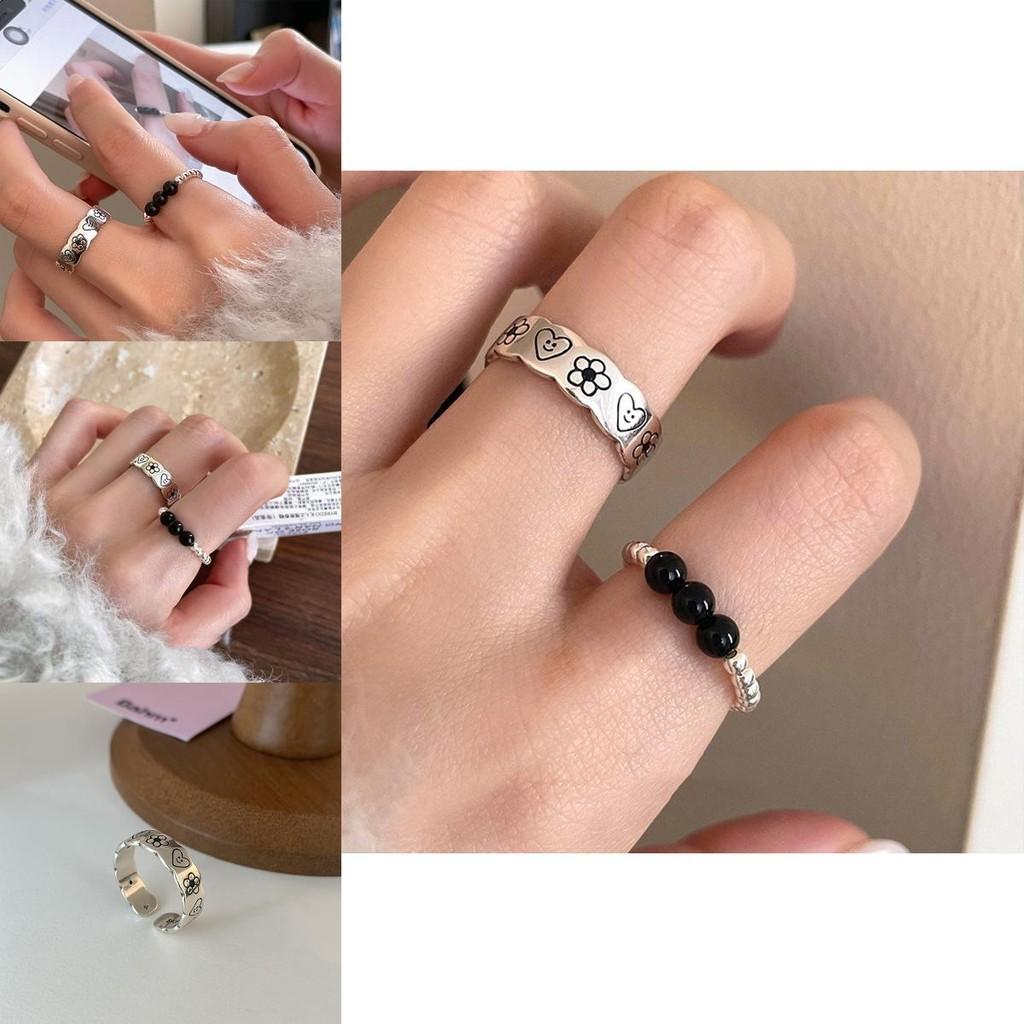 Новое черное кольцо-дудл с бусинами 2023 года для женщин в шикарном винтажном стиле, идеально подходит для повседневной носки