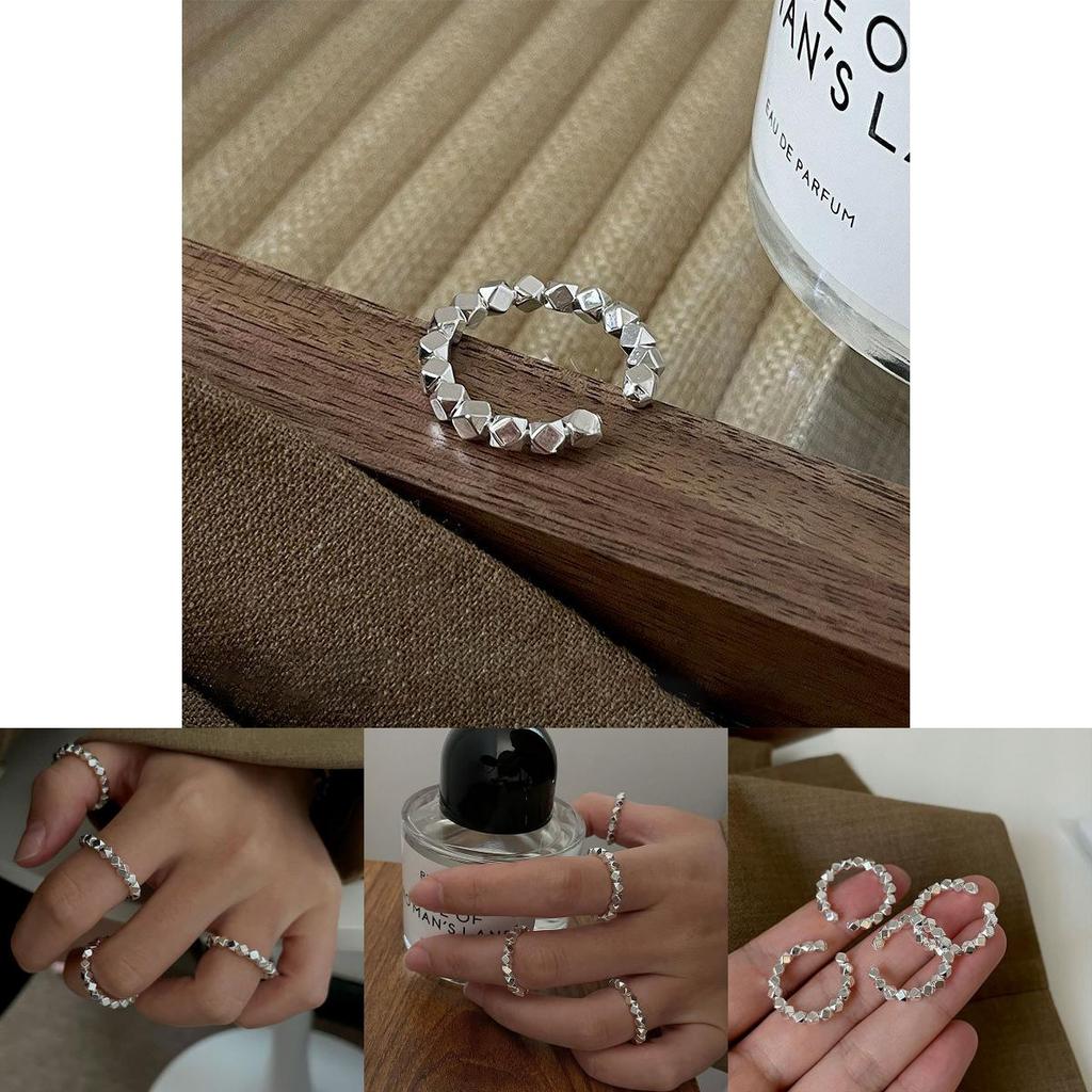 Elegant S925 Silver Adjustable Ring In Geometric Pattern For Trendy Women