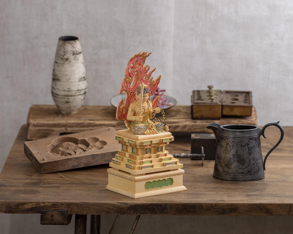 Seated Acala wood carving cypress wood with light gold Guardian deity of the zodiac for those born in the Year of the Rooster Myoo (22.5cm) (wood