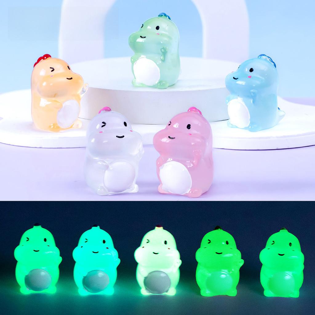 Adorable Glow-in-the-dark Dinosaur Resin Figures Colorful Cartoon Desk Accessories