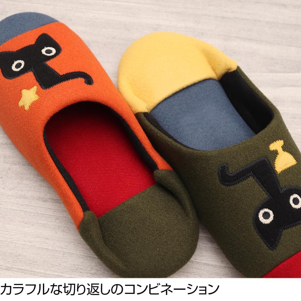 Эти домашние тапочки в стиле бабуш украшены милой аппликацией с популярным персонажем Ацуко Матано, «Черным котом МЕМЕ». Она идеально позирует для камеры, выглядя невероятно мило.. Они также отличаются яркими цветами, которые будут отлично смотреться в любом интерьере.