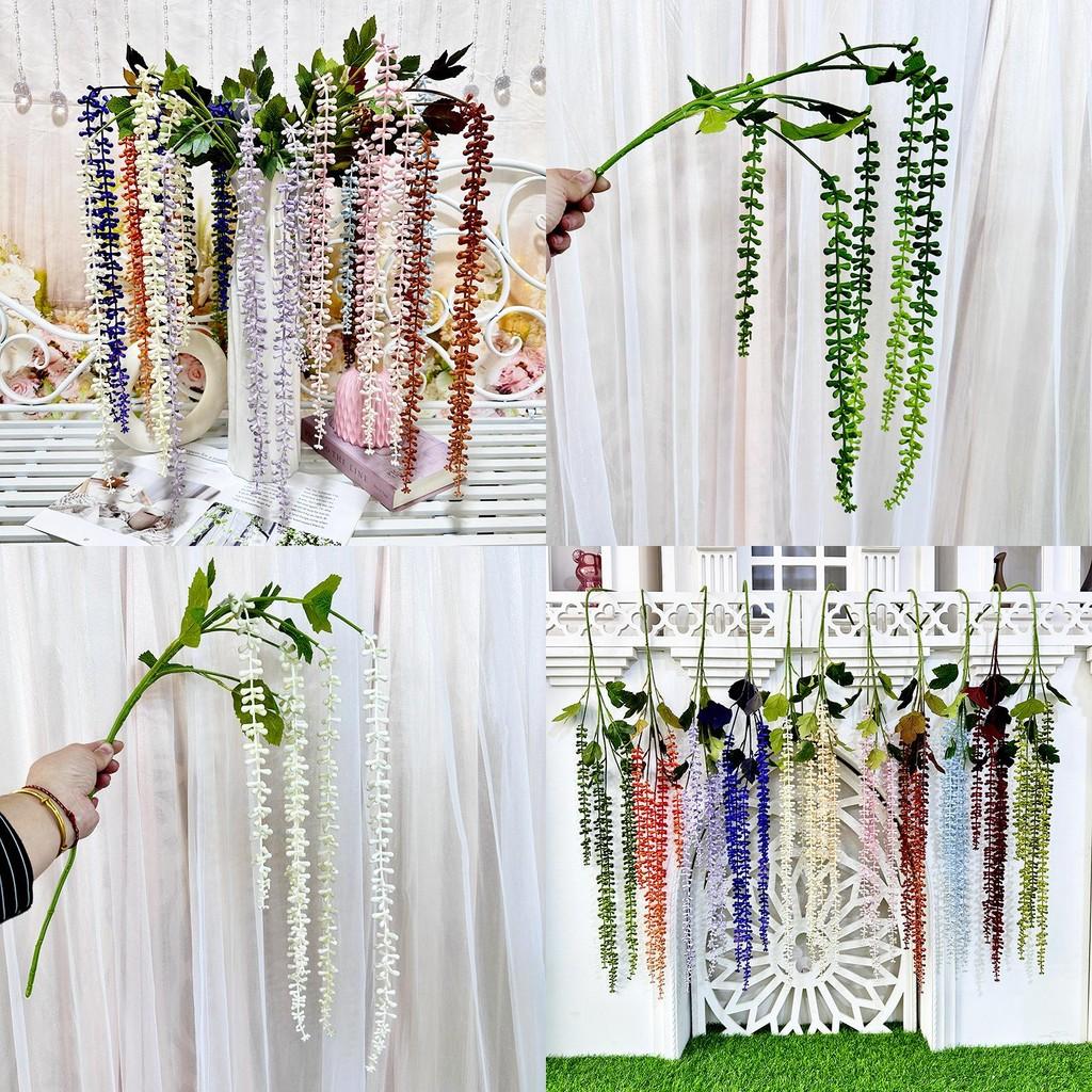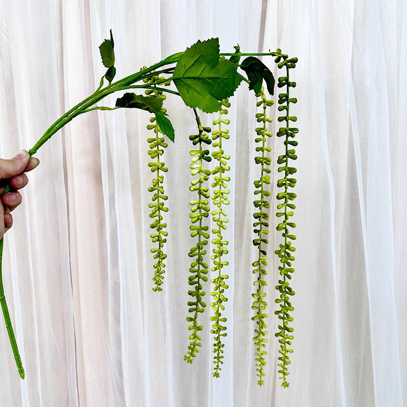 This artificial plant wall hanging features Senecio Rowleyanus, adding a decorative touch to wedding and event spaces. Crafted from durable silicone,with vibrant color options including white, pink, red, caramel, orange, blue, light green, light purple, dark green, dark purple, and champagne. Ideal for enhancing wedding decor, photography backdrops, or home interiors, it offers a realistic and lightweight design. Easily maintained by wiping clean with a damp cloth, this wall hanging supports versatile applications and long-lasting use.