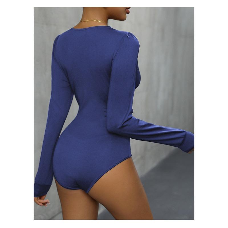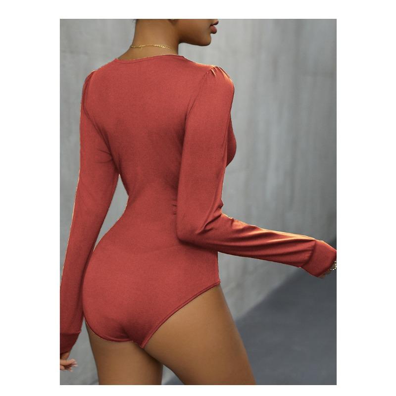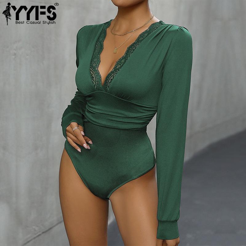 YYFS Женские модные повседневные боди с однотонным принтом весна-осень с длинным рукавом и V-образным вырезом