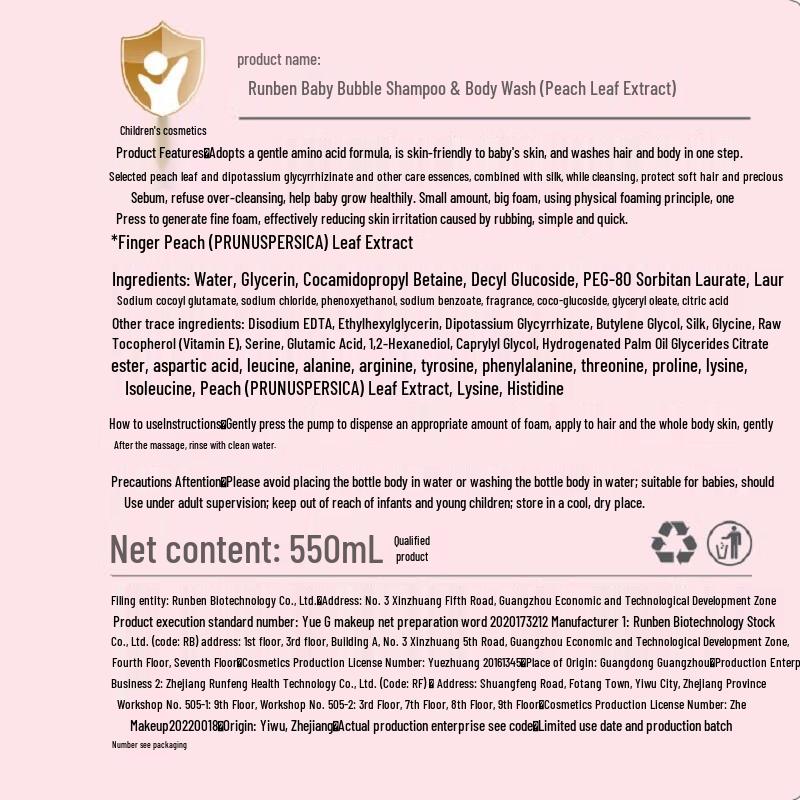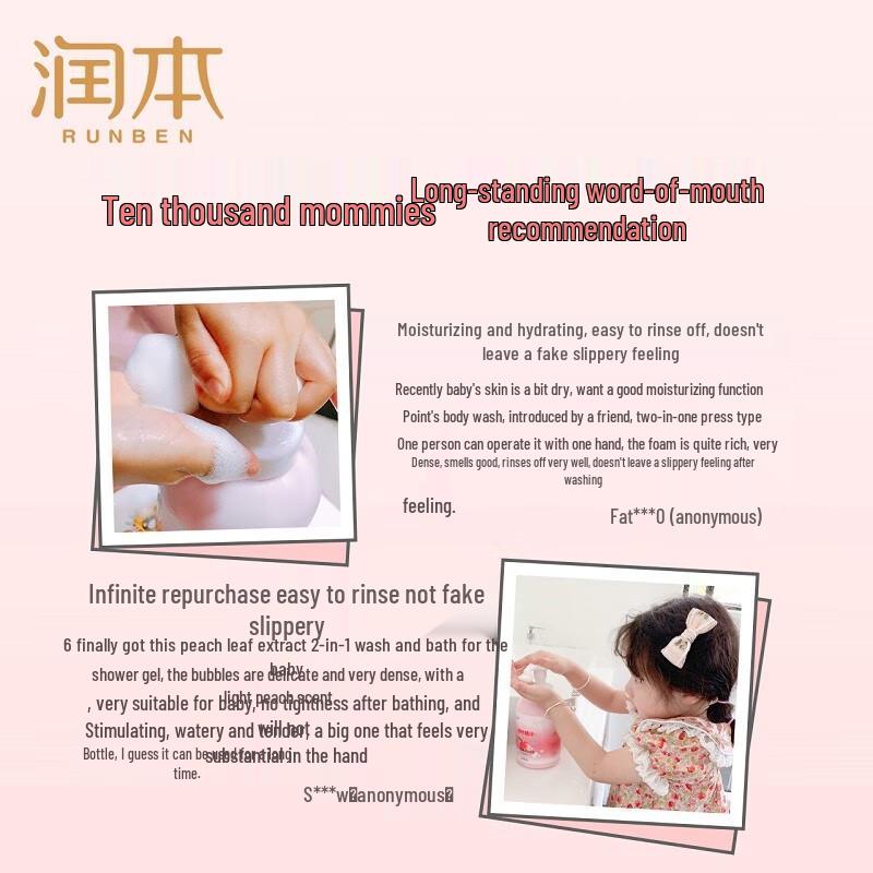 Runben Детский пенный шампунь и гель для душа с экстрактом листьев персика