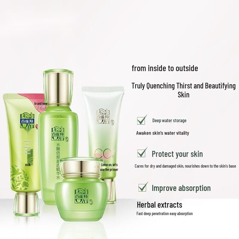 This Pechoin Herbal Hydrating & Soothing Skincare Set provides comprehensive care with a cleanser, toner, lotion, and eye essence, totaling 310g. Specially formulated for sensitive skin, this fragrance-free set delivers intense hydration, deep moisturizing, and a soothing effect, promoting skin comfort and rejuvenation. It is a domestic, non-special cosmetic product.