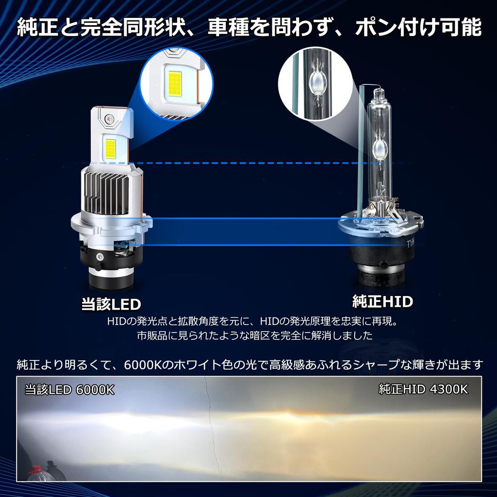 "Industry First" OPPLIGHT D4S LED Headlights, HID LEDs, New Vehicle Inspection Compliant, White, 6000K, 35W, 12080LM, 20000cd (Candela), for 12V Vehicles, Fan Included, Factory Ballast Connection, No Wiring Required, Improved Shadows, Projector Headlights for Vehicles, D4S LED Bulbs, Set of 2
