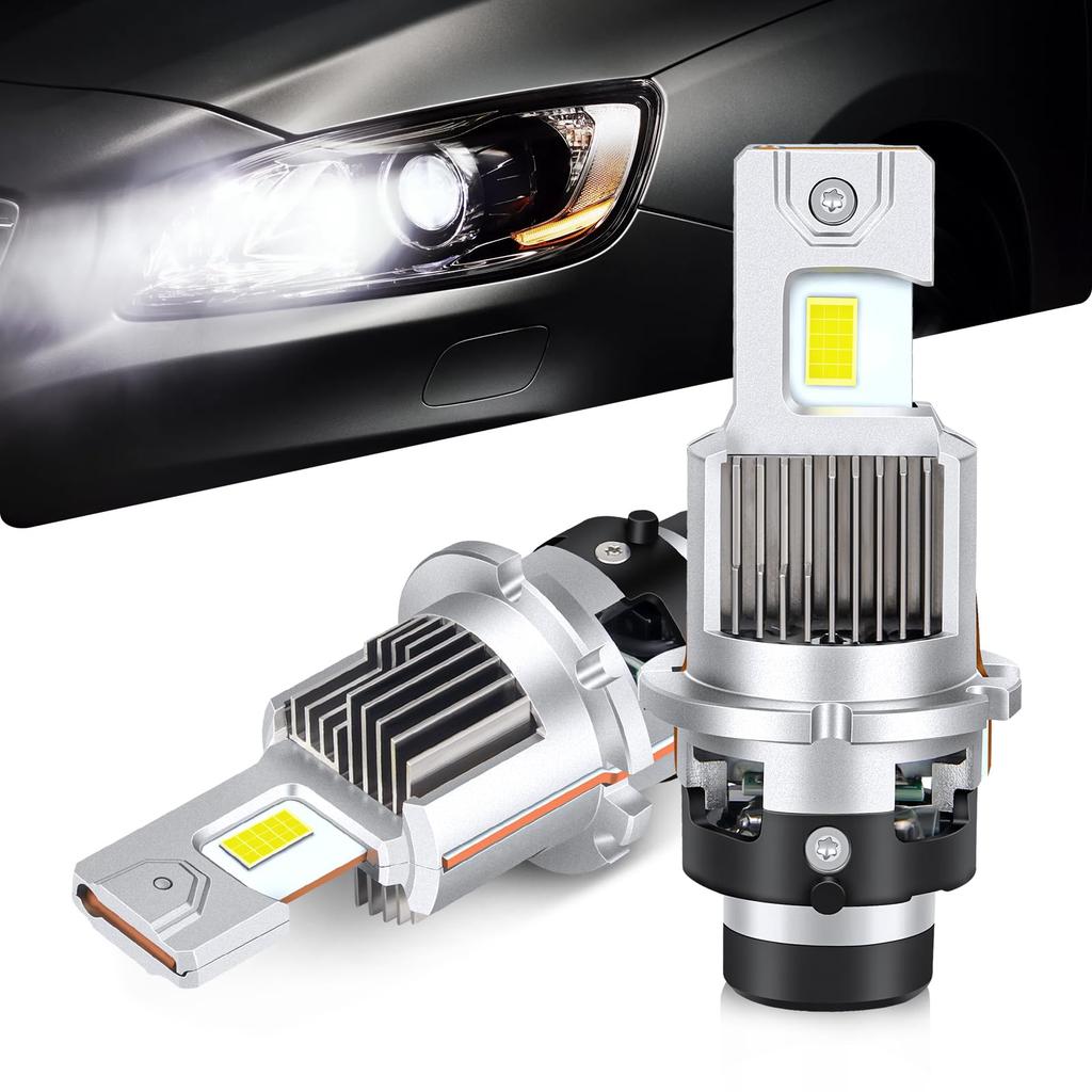 An industry first, newly released D4S LED headlight with no dark areas. Same light distribution as OEM: This product features an innovative edge cut design that completely eliminates dark areas. The projector-style lens creates a clean cut line, eliminating dark areas and meeting new vehicle inspection standards. Most commercially available headlights have thick light boards and edges, which further expand the dark areas and create distracting dark areas while driving.