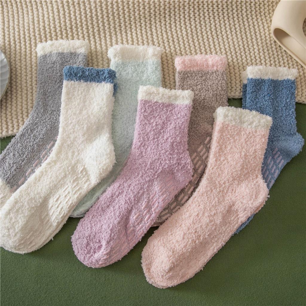 Клей для ног, Носки против скольжения, Не линяющие волосы, Носки из кораллового флиса, Носки-тапочки, Женские носки, Носки средней длины