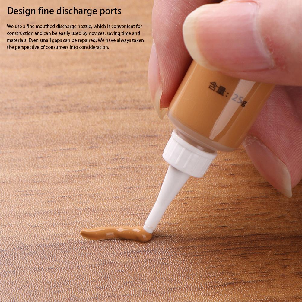 Легко использовать: Эта паста для ремонта деревянной краски проста в использовании, выдавите ремонтный наполнитель в область ремонта, затем используйте хвостовик трубки для разглаживания поверхности, удалите излишки и дайте высохнуть.
