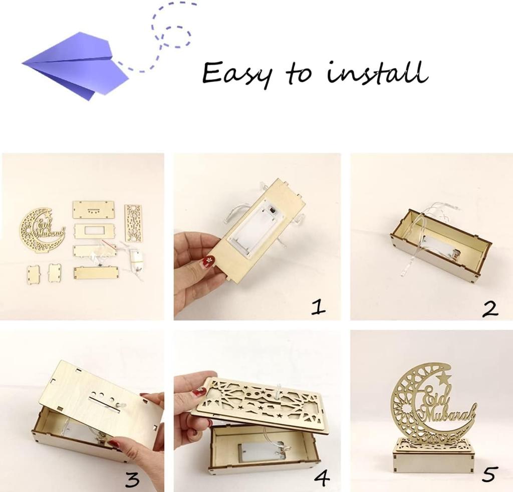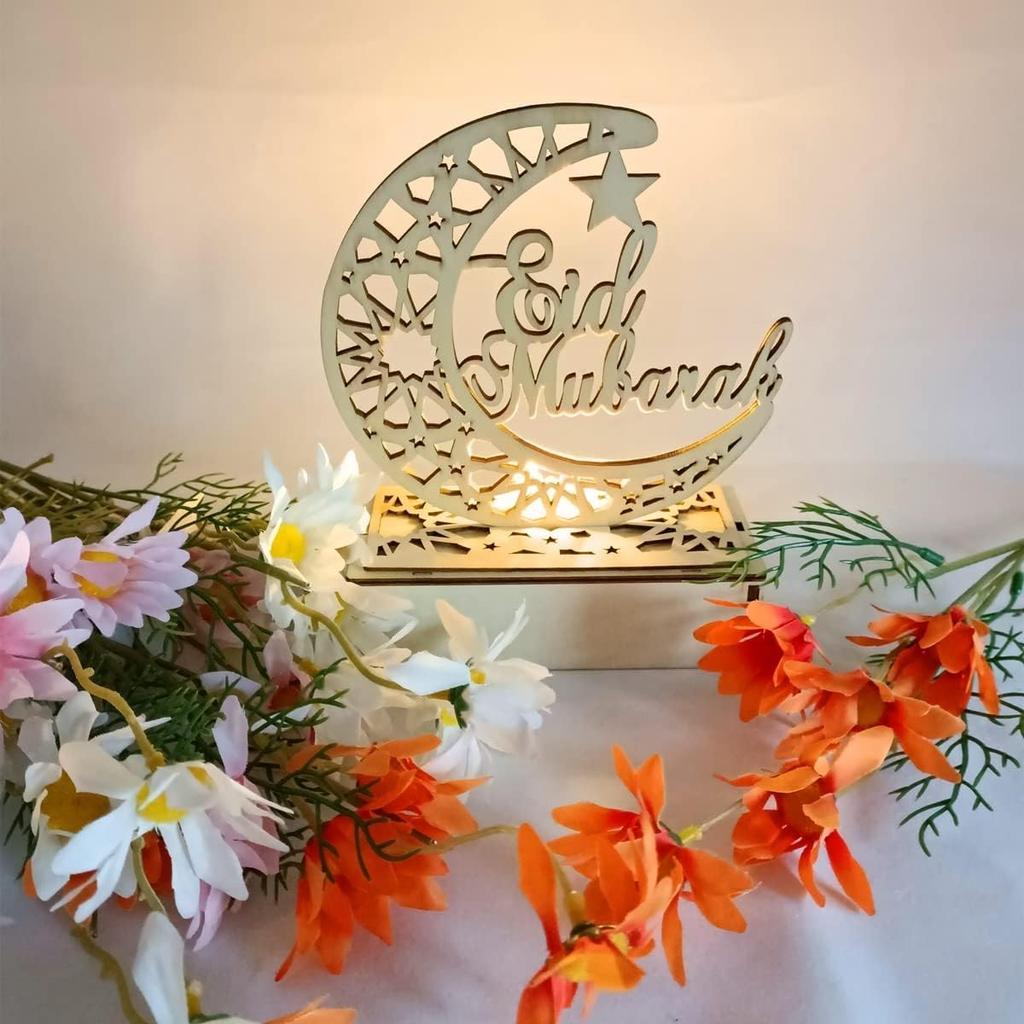 Рамадан Ид Деревянная Луна Звезда Настольная Лампа Мубарак Украшение для Дома Принадлежности для Вечеринки Исламское Семейное Собрание Настольное Украшение
