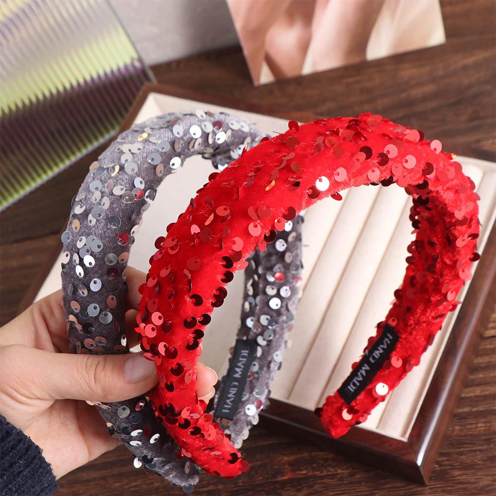 Однотонная повязка на голову с пайетками Широкая губчатая повязка для волос Модная широкая повязка для волос Девочка