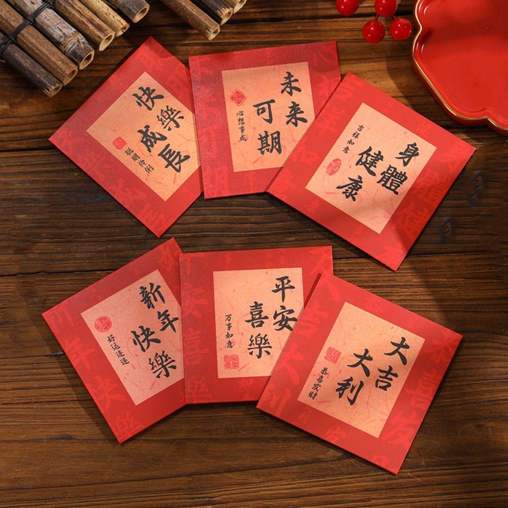 12pcs/set Chinese Style Mini Red Envelopes Calligraphy Money Envelopes Red Pocket New Year Gift