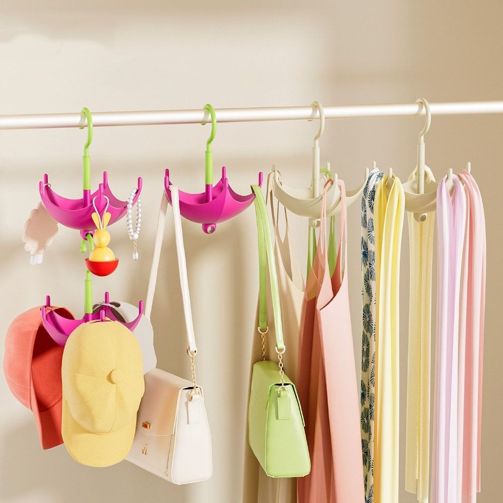 2Pcs Punch Free Umbrella Rotation Coat Hanger 5 Claw Bag Hooks for Home