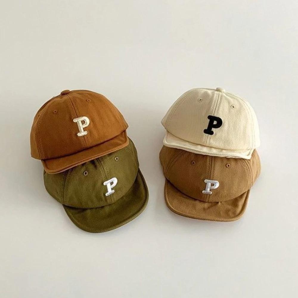 Детская шапка весна и осень мягкий козырек корейская с вышивкой букв p иностранная атмосфера кепка-утка детская младенец инс бейсболка