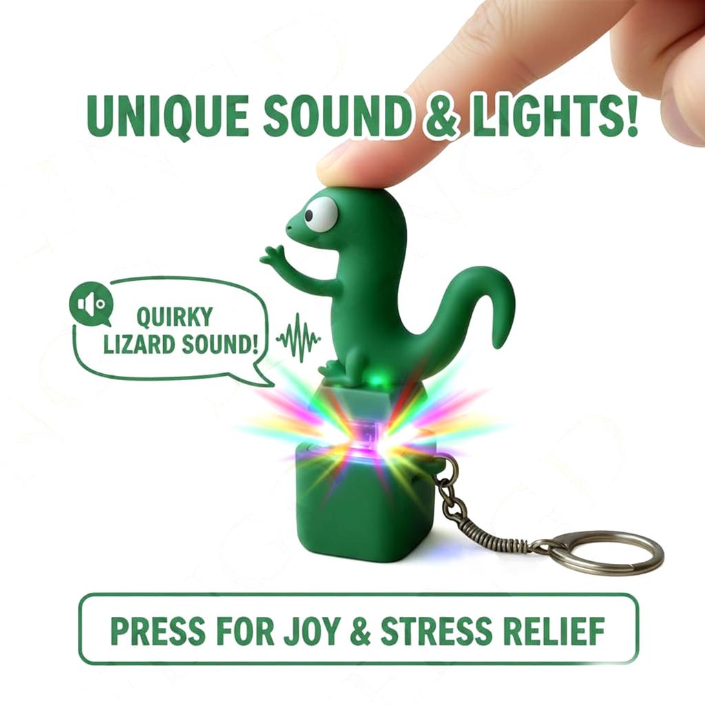 Funny Lizard Button Sound Keychain with LED Light Rechargeable Lizards Keychain Portable Stress Relief Fidget Toy for Adult Kids