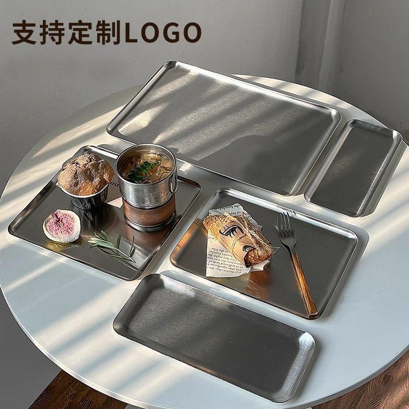 Ins Korean Plateins, Stainless Steel Rectangular Plate Cafe Cake Dessert Plate Storage Trays,Home Kitchen Storage Table Dish