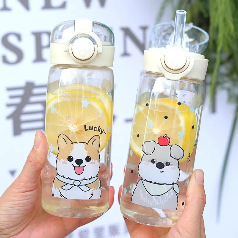 400ml Leak-Proof Water Bottle Cute Dog Cat Print Water Bottle Straw Cup Kids Students Water Bottle Portable for Sports & Fitness — купить товар онлайн с бесплатной доставкой по всему миру!