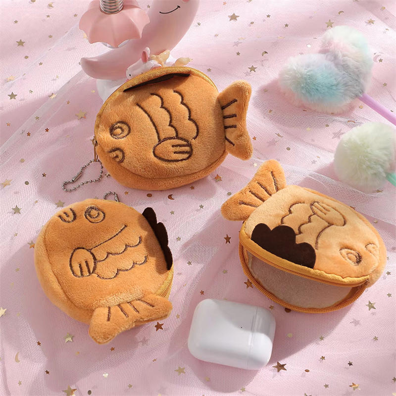 Милый кошелек для монет в форме рыбки, женский, для денег, карт, ключей, наушников, кошелек для мелочи, для мелких вещей, на молнии, плюшевая мини-сумка, детский подарок