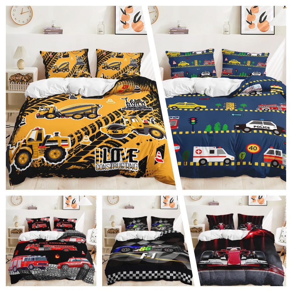 Bed Three-Piece Construction Car Racing Game Quilt Cover 3D Digital Printing Kit — купить товар онлайн с бесплатной доставкой по всему миру!