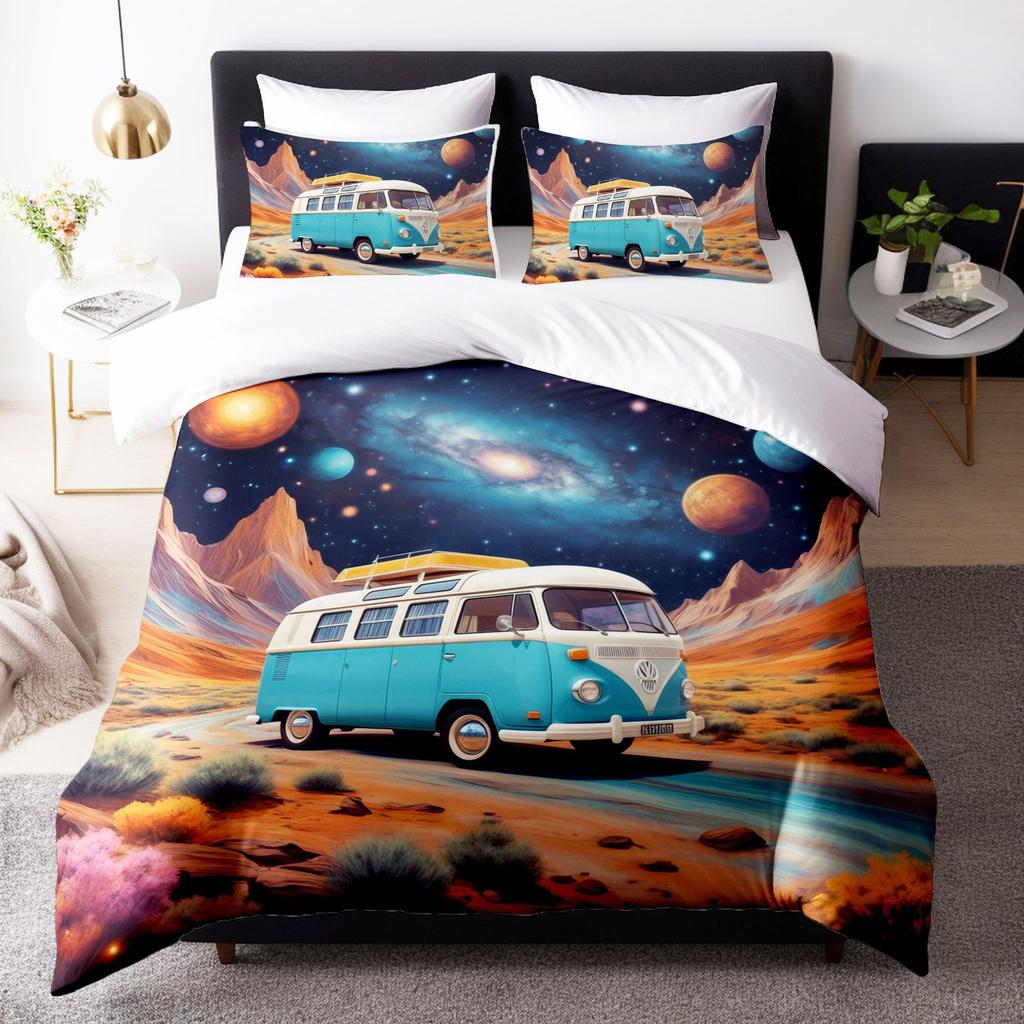 Digital 3D Printing Three-Piece Cartoon Planet Bus Bedding Quilt Cover Pillowcase Home Textiles