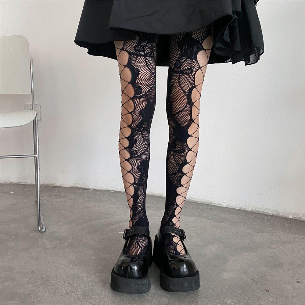 Носки-сетка с цветочным узором, чулки-боди, колготки с принтом, женские чулки, ажурные колготки