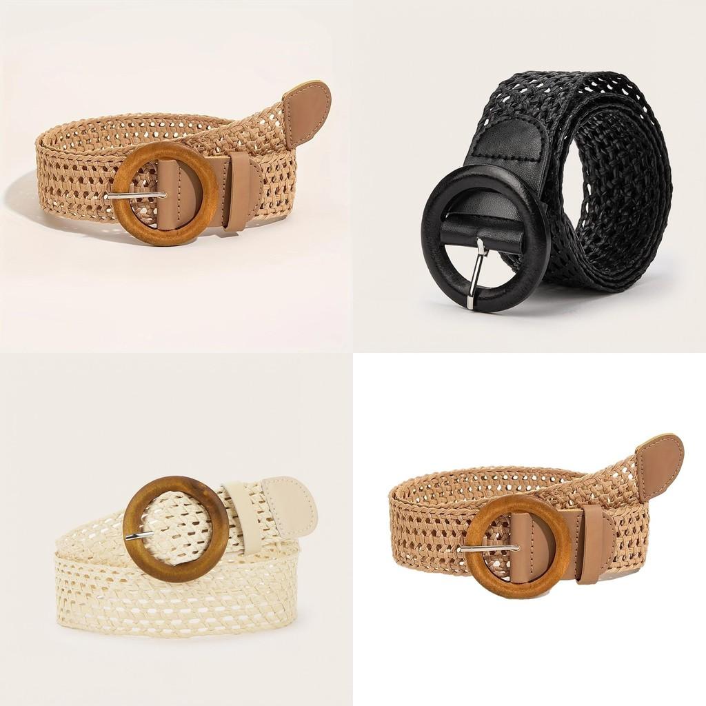 Богемный плетеный хлопково-льняной пояс с круглой пряжкой для женщин, летние аксессуары для платья