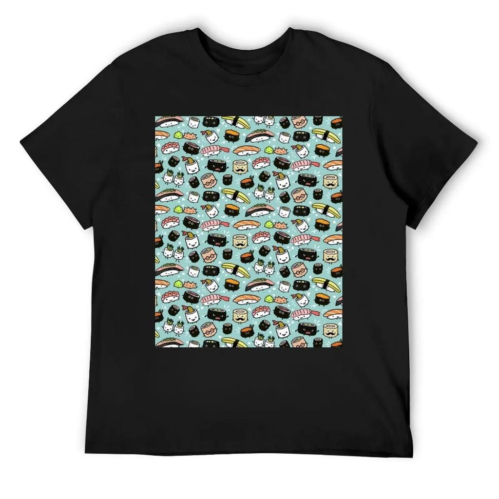 Cute Sushi Pattern Kawaii Sushi Characters T-Shirt sublime oversizeds shirts men graphic