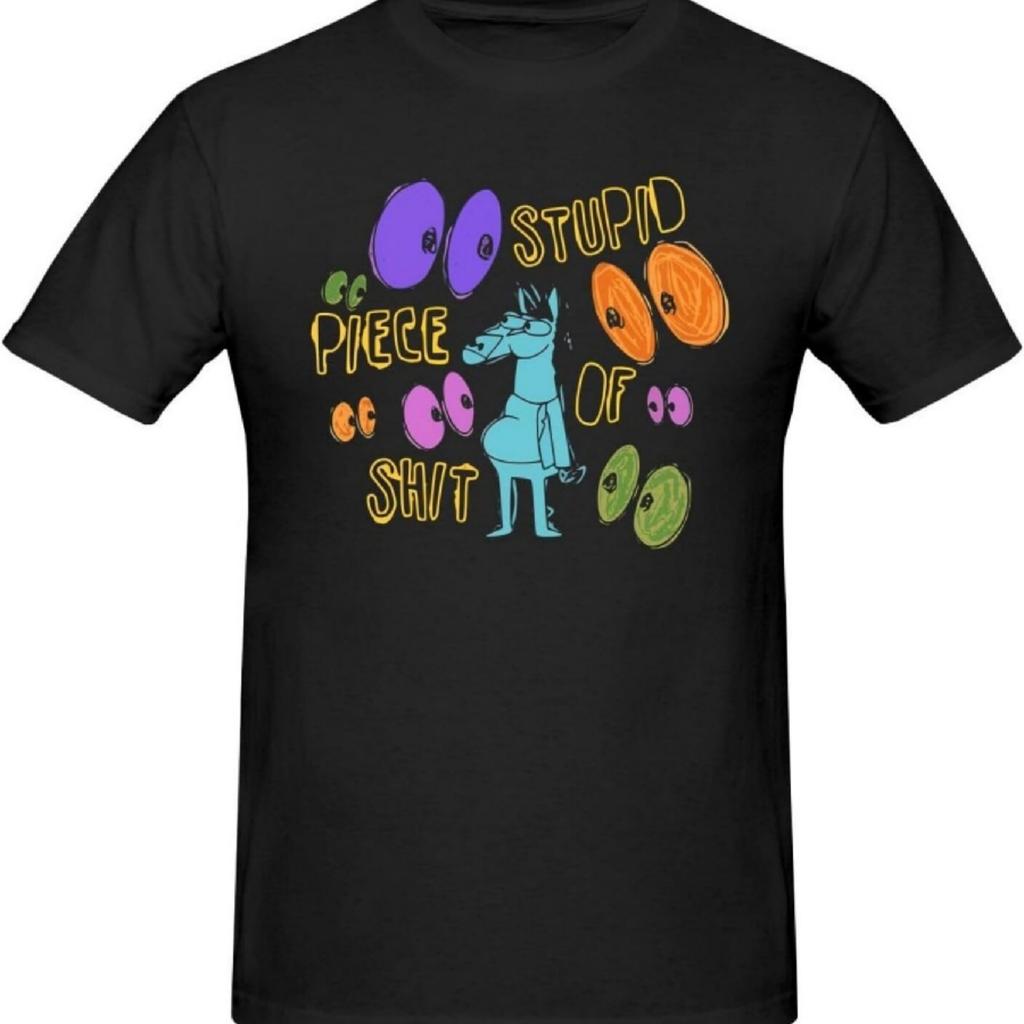 BoJack Sitcom Horseman Анимационная мужская футболка Хлопок Графическая Короткий рукав Круглый вырез Футболки Повседневные Топы Черный 5X-Large
