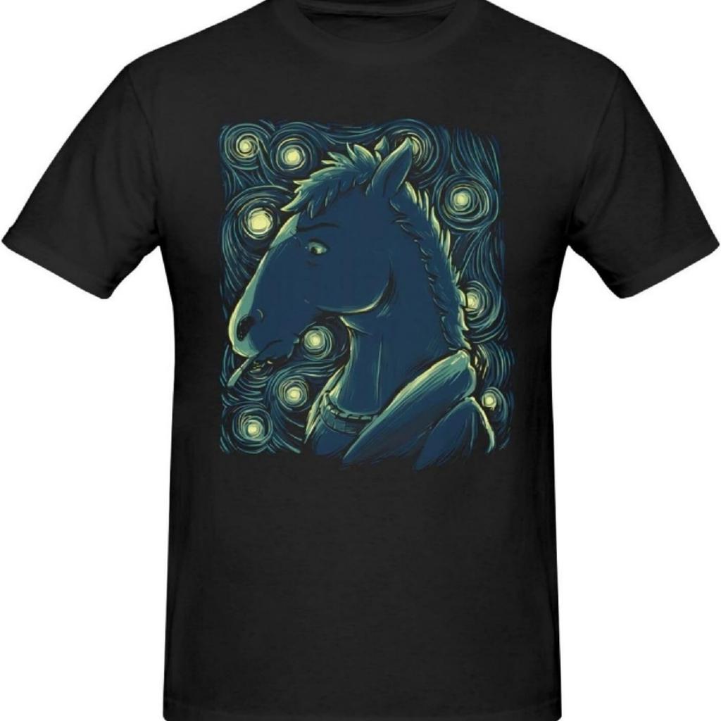 BoJack Sitcom Horseman Анимационная мужская футболка Хлопок Графическая С коротким рукавом С круглым вырезом Футболки Повседневные топы Черный X-Large