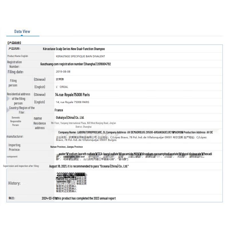 Product (registration/recordation) name: Kérastase Scalp Series New Dual Function Shampoo 250ML