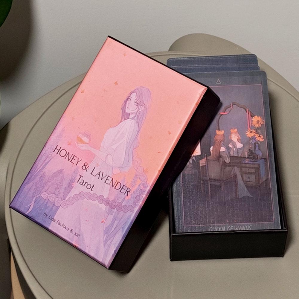 Таро «Мед и лаванда» 12*7 см в жесткой коробке, колода «Сказки и фэнтези», 78 карт, напечатаны на карточном картоне 350 г/м² с двойным тиснением