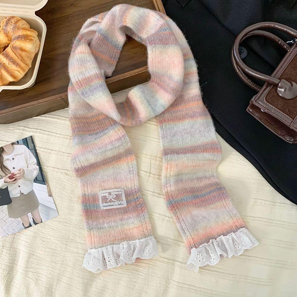 Plush Cashmere Knitted Scarf Lace Winter Shawl Fashion Rainbow Striped Scarf Autumn Winter