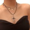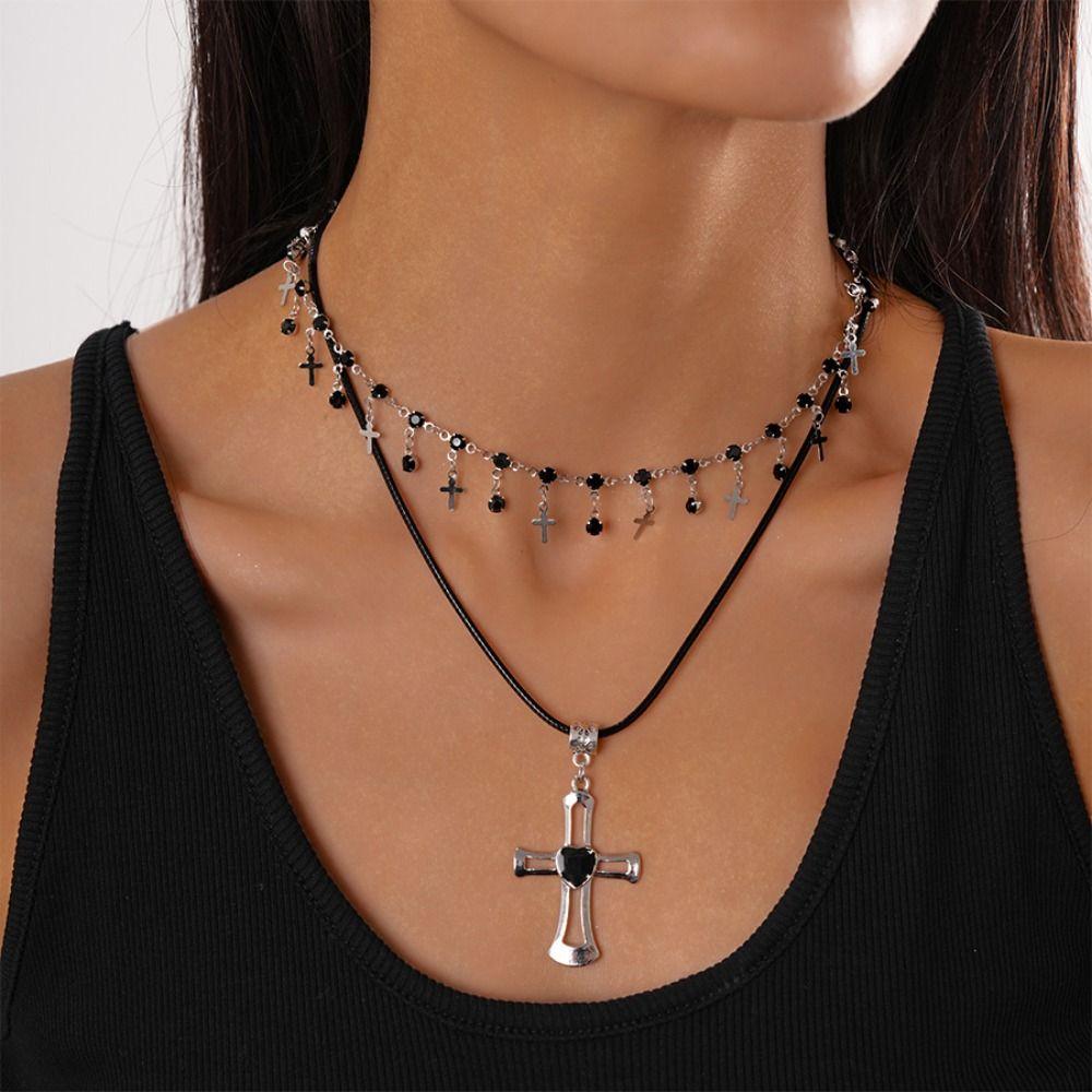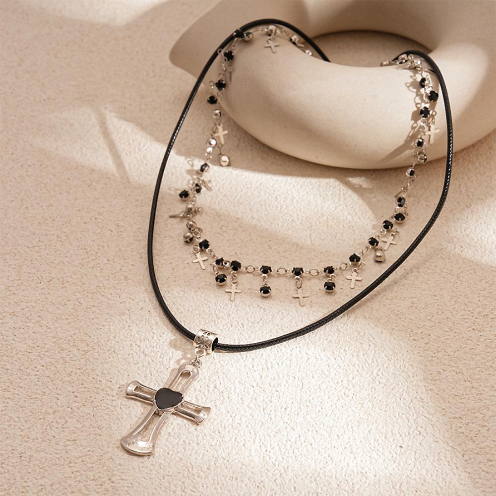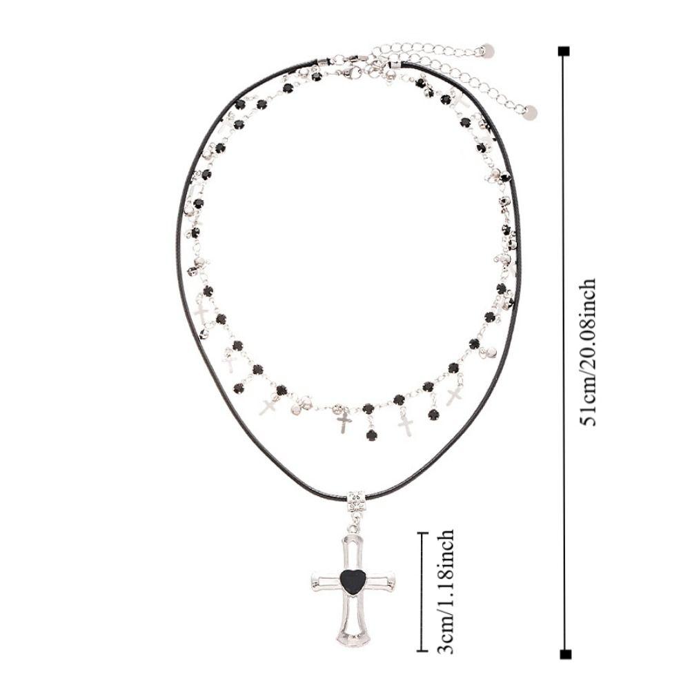 Heart Rhinestone Necklace Black Rhinestone Double Layer Necklace Girls