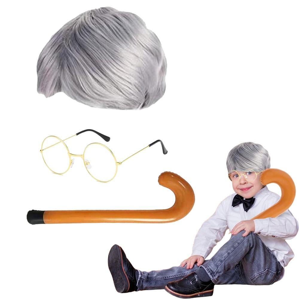 1. **Complete Grandpa Costume Kit**: Transform into a convincing old man with this all-in-one cosplay set. It includes a gray wig, inflatable walking stick, glasses, fake eyebrows, and a beard, everything you need to embody the classic grandpa look.