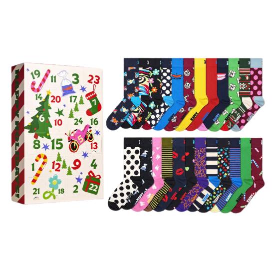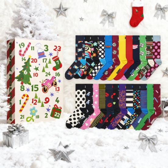 Эластичная ткань обеспечивает удобную посадку для большинства размеров, идеально подходит для отдыха или ношения с ботинками.. С 24 праздничными и уникальными дизайнами, каждая пара выполнена в ярких цветах и с жизнерадостными узорами, чтобы сделать каждый день декабря особенным. Эти универсальные чулки станут отличными подарками для друзей, семьи или для офисных вечеринок, а также могут быть использованы в качестве очаровательных украшений для рождественской елки или наполнения для праздничных чулок..