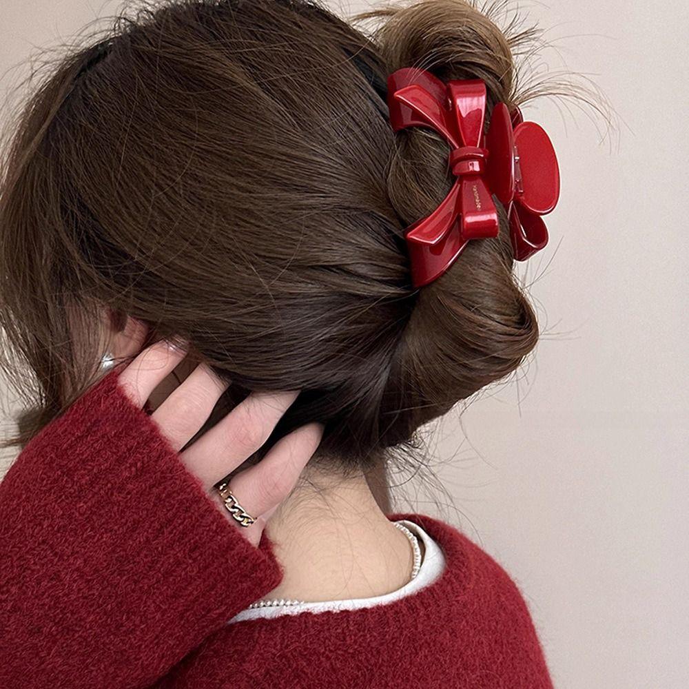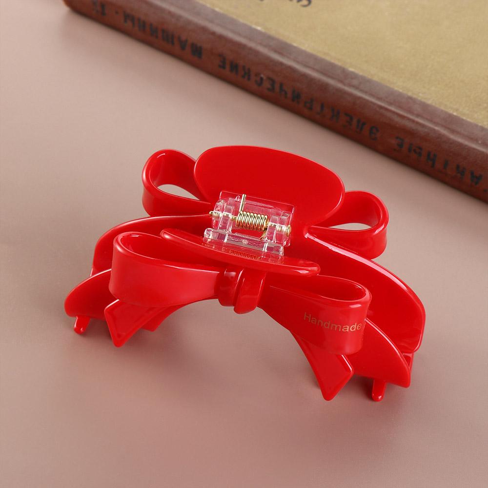 Acetate Acetic Acid Bow Hair Claw New Year Red Bownot Grab Clip Personalized Red Hair Clip Daily