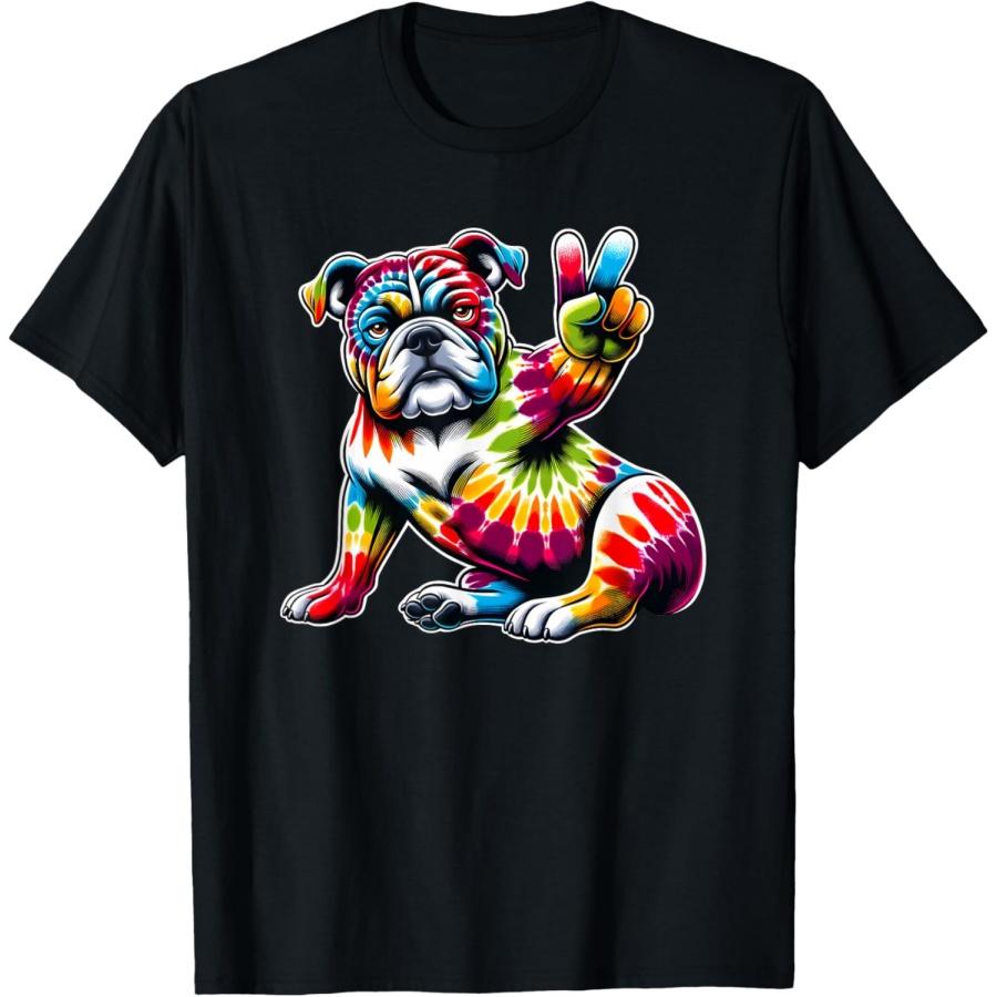 Peace Sign Tie Dye American Bulldog T-Shirt for Men Women Kids — купить товар онлайн с бесплатной доставкой по всему миру!