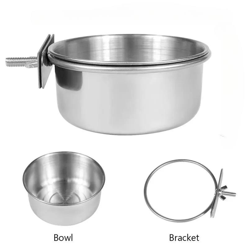 Stainless Steel Bird Food Box Cage Clamp Stainless Steel Disc Parrot Feeding Cup Bird Feeding Plate Removable Small Animal Birdc