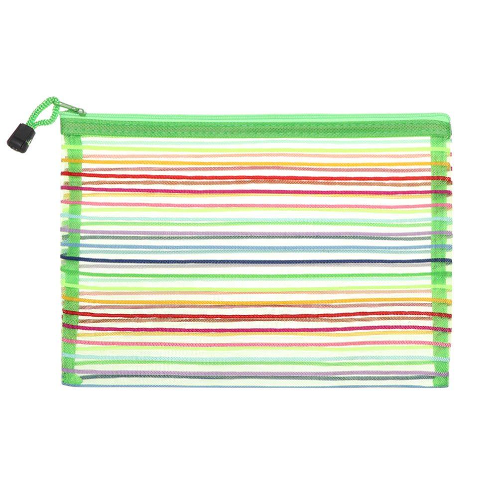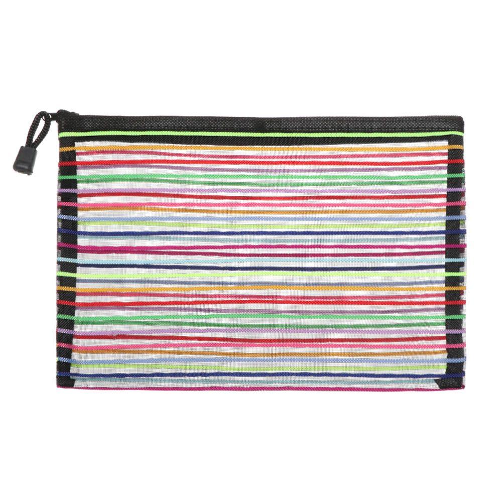 Color Rainbow Color Nylon Cosmetic Stationery Zipper Pencil Case Grid Mesh Pen Bag Cosmetic Storage