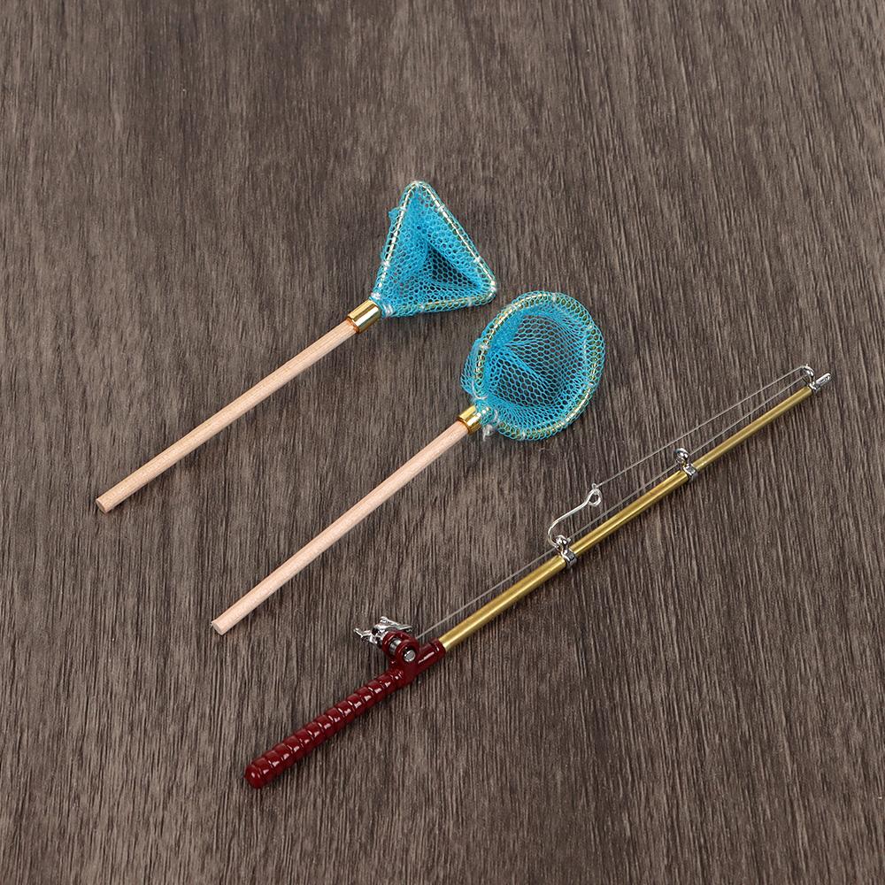 Dollhouse Decoration Fairy Garden Trammel Net Doll Accessories Miniature Fishing Rod Fish Pole