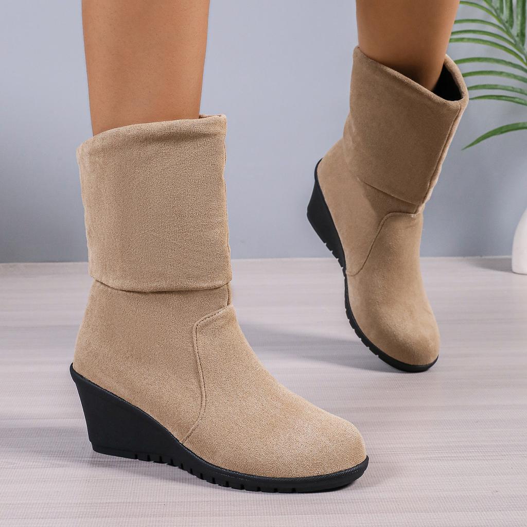 Женские ботильоны на танкетке, зимняя мода, повседневная обувь для женщин, элегантные высокие каблуки, круглый носок, платформа, однотонные ботинки