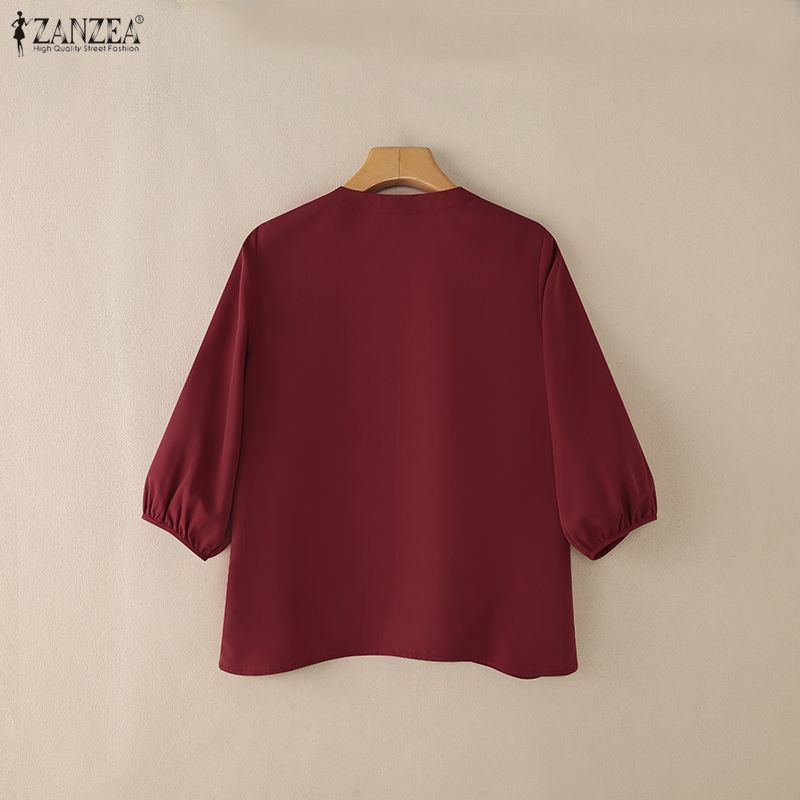 ZANZEA Женская повседневная однотонная блузка с круглым вырезом и рукавом 3/4